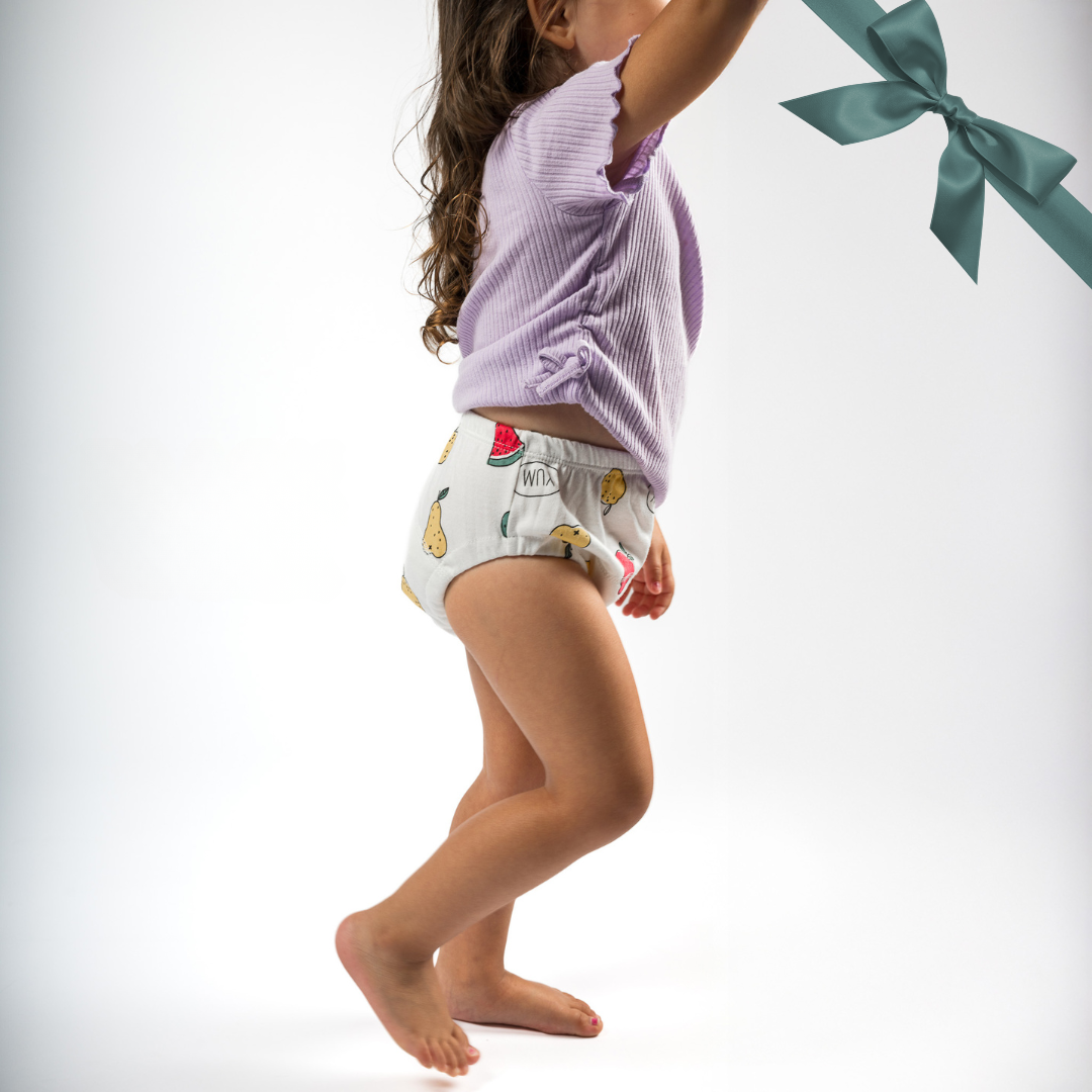 Unsere Potty-Trainingshosen sind außen aus 100 % weicher Baumwolle gefertigt für maximalen Hautkomfort – völlig frei von reizenden Materialien.